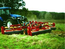 Combined mulchers reach working widths of as much as 7 m [276“]. OLS multipla is ideal for mulching of large areas such as parks, airports, or uncultivated land. Three independent mulching mowers are trailed on a chassis with 2 wheels. The mulching heads perfectly follow the contours of the ground. The width and the strength of these large mowers makes possible to mulch at a high speed, while leaving a clean result. Counterknives inside the casing of mulchers give a perfect mulching result. There is a 35 cm [14”] side shift to each side on each mulching head.