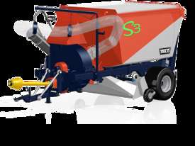 The TRILO S3 is a compact and economical vacuum sweeper with a loading capacity of 3 m3 and large, air filled tyres for low soil pressure. The S3 is standard equipped with a brush hood, which brushes the mowed grass or leaves together for more efficient vacuuming. Optionally you can also equip the S3 with a mowing shaft, verticutting shaft or a combined shaft for simultaneously mowing and verticutting. The castor wheels are mounted in the heart of the shaft, ensuring that the sweeper follows the contours of the soil perfectly. This vacuum sweeper is suitable for tractors from 28 HP (20 kW) and is driven by a Walterscheid PTO shaft with wide angle and overrun clutch. The Ø 700 mm 4 blade fan is placed inside a TRILO centrifugal pump with replaceable lining for extra-long life. The optional wander hose has a reach of 6 meters and is equipped with a sturdy end pipe with handgrip.