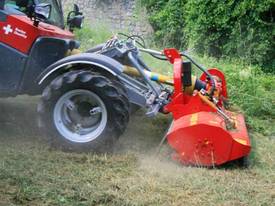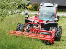 The lightweight construction of the flail mulcher SMWA k allows work on sloping ground. With a manual inverter the rotor can be operated in both directions and the mulching result will be optimized. Depending on the direction of the rotor shaft it mulches low or high grass and brush. Wide-open hydraulic front hood is appropriate to mulch high grass.