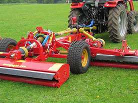 Combined mulchers reach working widths of as much as 6 m [236?]. This is ideal for large areas such as parks, airports, or uncultivated land. Three independent mulchers, trailed on a chassis, perfectly follow the contours of the ground. The width and the strength of these large mulchers make it possible to mulch at a high speed, while leaving a clean result.