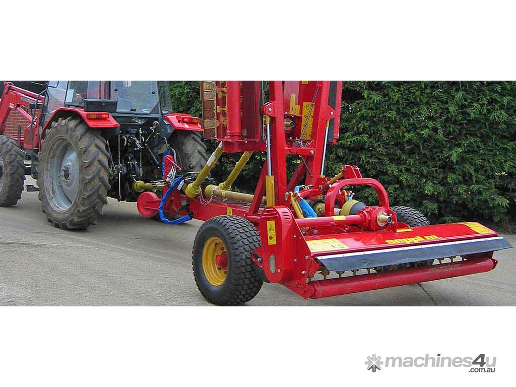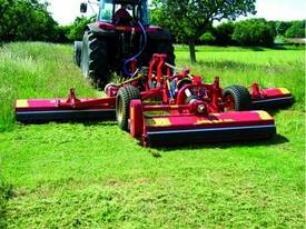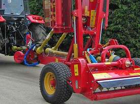 Combined machines like the SMWA multipla are made of 3 single mulchers type SMWA rev cf, liftable for transport and parking. With the STOPSAFE™ system it is possible to work with one or both wing units lifted, e.g. when working on narrow areas. The central mulcher has a 3-point linkage and can be used independently.