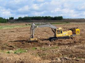 The SUPER BMS™ is a strong mulcher to be mounted on the dipper arm of an excavator or forwarder. Its patented rotor with efficient hammers MINI DUO™ with tungsten carbide tips mulches trees and stumps up to 40 cm [16?] in diameter. More efficient due to an improved rotor with additional exposure.