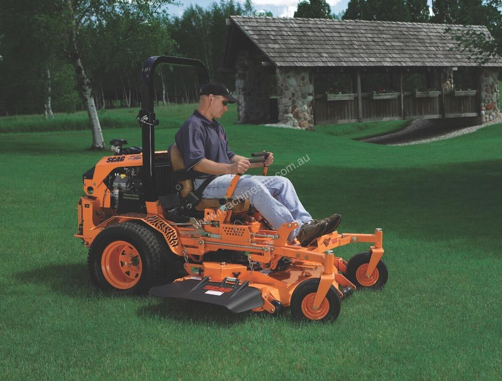 The Scag Turf Tiger can cover major grass with ground speeds up to 12mph (10mph on some models) and large 10+ gallon fuel tank. The simple, trouble-free shaft drive cutter deck means minimum maintenance requirements and a wide range of cutting heights. The double tube steel main frame gives the mower incredible strength and durability.