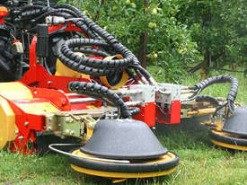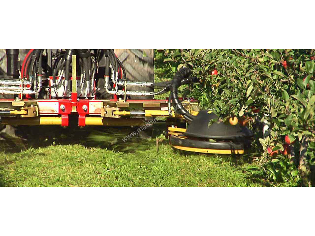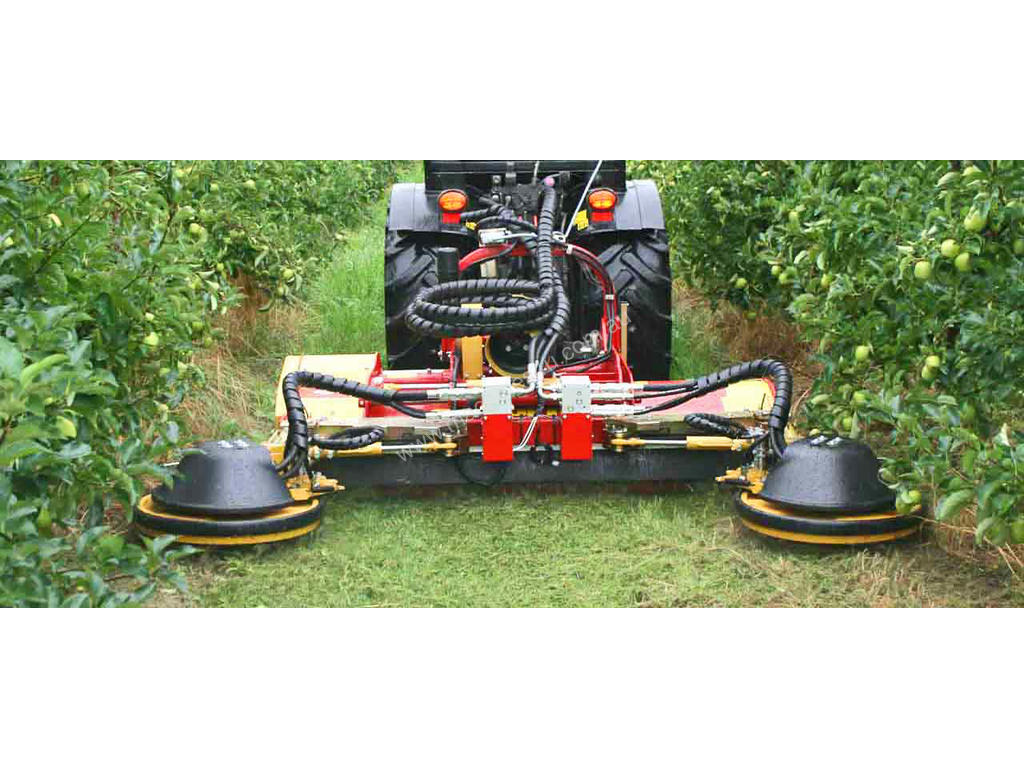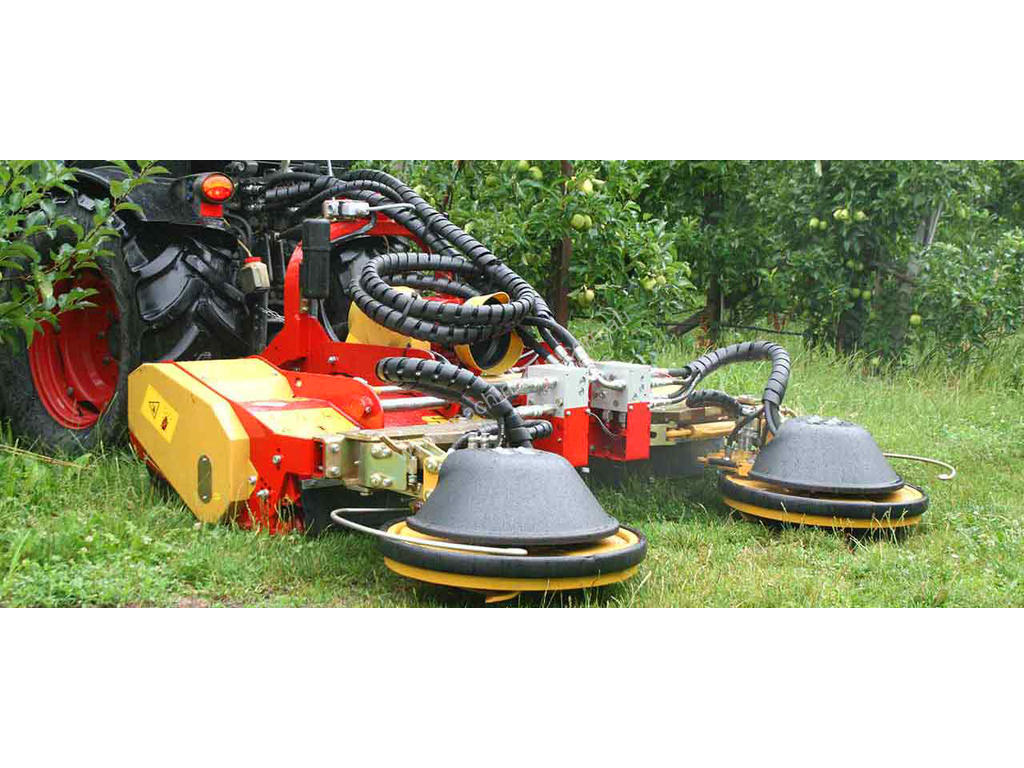 The XSC™ outrigger rotrary mower for inter-row mowing can be easily mounted via X-FAST™ to the mulcher or to the accessory carrier PORT-X™. Sensitive touchers allow to mow around obstacles and trees without shaping the tree. Bearings and greasing has been improved.